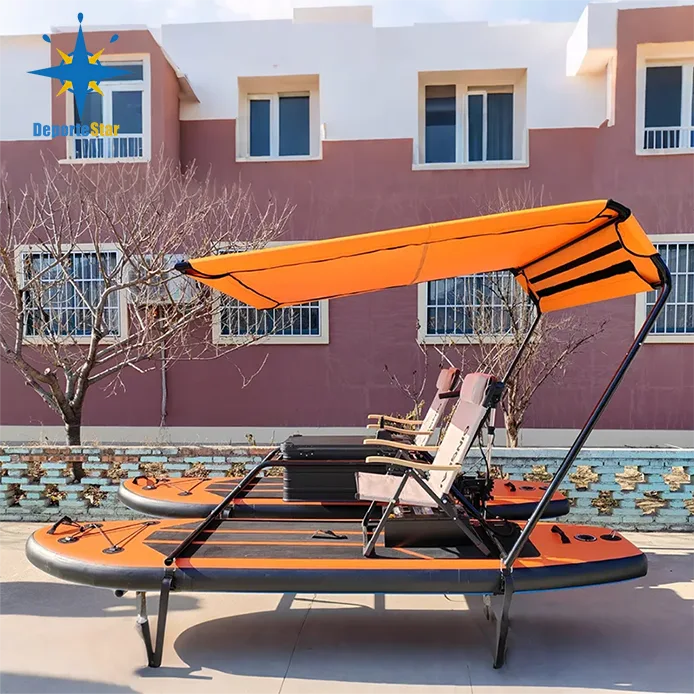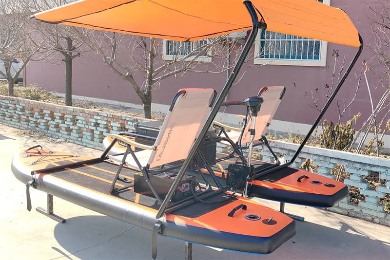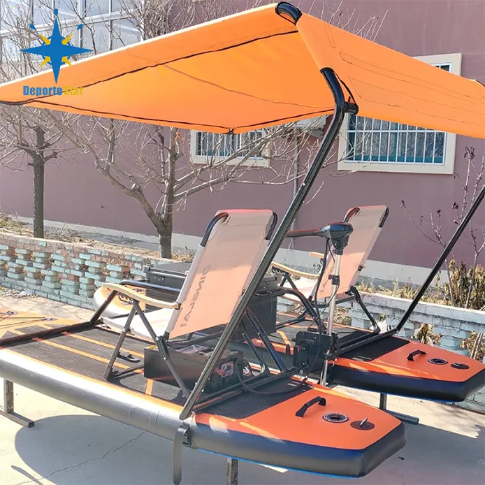 1. Design exclusivo do iate de barco catamarã: - Prancha de surf em tubo de pvc de materiais leves (almofada de arame) com estrutura de alumínio ou estrutura de aço stalinless. Que impulsionam a estabilidade e a manobrabilidade na água. Este catamarã inflável pode ter formato aerodinâmico e reduzir a resistência à água.
