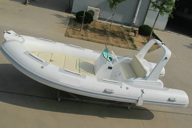 A Qingdao Seastar Sport Equipment Company produziu cedo alguns comprimentos de barcos com costelas de fibra de vidro. Este casco sólido de fibra de vidro é mais pesado que o casco de alumínio, portanto, o barco com costelas de fibra de vidro pode garantir ao seu barco capacidades de giro mais precisas e a capacidade de navegar em condições de mar mais extremas.