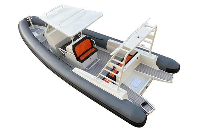 Casco de alumínio 28 pés RHIB 860 Costelando Orca Inflável Orca Hypalon da Qingdao Seastar Sport Equipment Co., LTD, este fabricante produz barcos infláveis rígidos profissionais e pequenos barcos de alumínio.